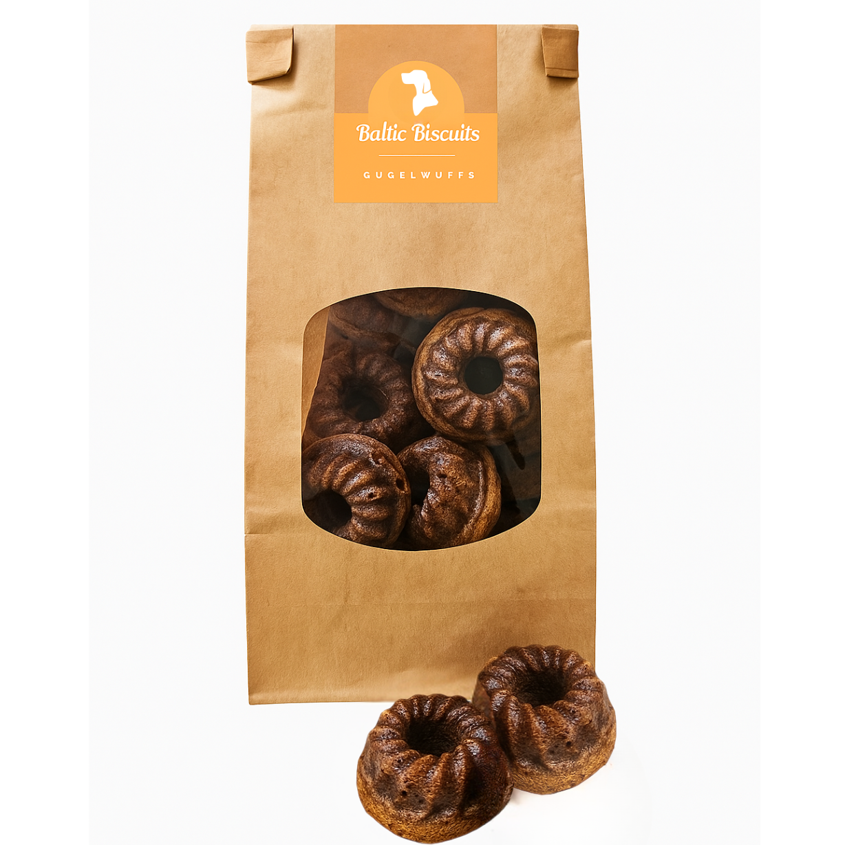 In jeder Tüte findest du 6 leckere Gugelwuffs, jeder davon ist handgemacht, 3-fach gebacken und mit 2 verschiedenen Teigen zu einem optischen Hingucker kreiert worden. 🥰